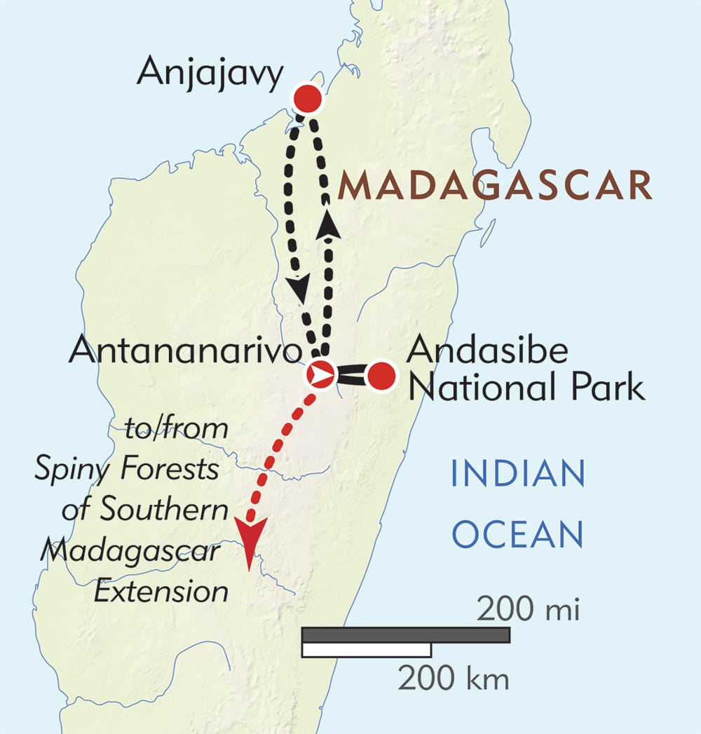 Traveling in Madagascar is always an adventure! Changes and delays are all part of the experience. We will make every effort to follow the Detailed Itinerary as described, but please note it may be rearranged due to unforeseen circumstances beyond our control, including internal flights that are often subject to delay, cancellation, and last-minute schedule changes. In addition, travelers should be aware that there is a scarcity of medical facilities outside of Antananarivo and they may not be up to international standards. A spirit of adventure and a flexible, cooperative attitude are musts. Your reward is an unparalleled experience of one of the world's most intriguing countries and its fascinating wildlife.