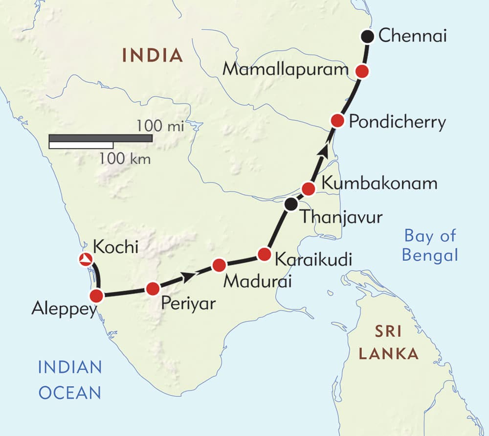 South India is simply dazzling, with its spice ports, colonial towns, and magnificent temples nestled in a lush tropical landscape. Our hand-crafted journey delves deeply into this colorful realm as we watch an ancient dance-drama performance, explore by houseboat on tranquil Kerala waterways, and discover Tamil Nadu's sacred architecture, where carved temples soar high above palm forests. Along the way, we savor legendary cuisine, from coconut-infused fish curries to tangy rasam.