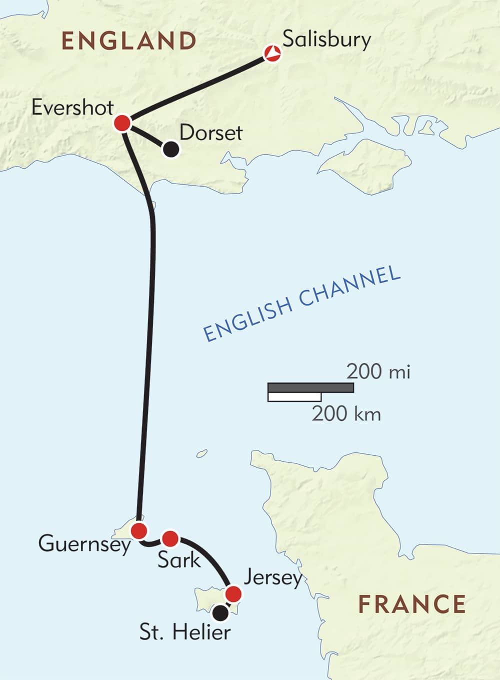 This utterly unique journey links some of Britain's most ancient and intriguing settings—famed Stonehenge, the cliffs of the Jurassic Coast, Dorset's rural landscape, and the exquisite Channel Islands, closer to France than England, with a fascinating fusion of French and English cultures. We'll view Stonehenge, then head to Dorset to hike along the World-Heritage-listed cliffs of the coast. In the sunny Channel Islands, with their cobbled lanes and aquamarine seas, we'll hike on Guernsey, Sark, and Jersey, soaking up the Anglo-Norman heritage and vibrant foodie scene.