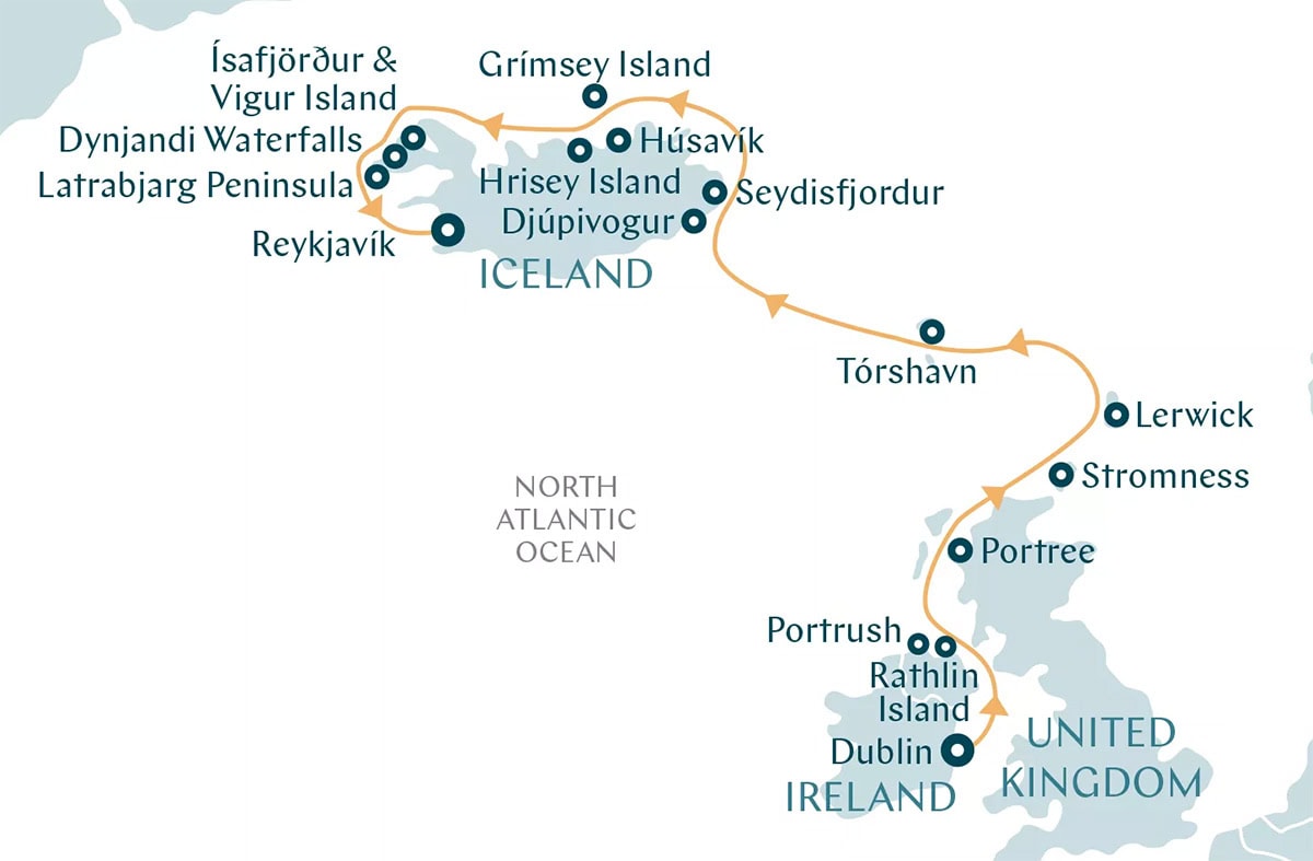 This North Atlantic voyage takes you from Britain's most northerly islands across the Atlantic Ocean to Iceland. Along the way, you'll discover Scottish isles, from the Hebrides to the Shetlands and Orkney, before heading to the Danish outpost of the Faroe Islands, and several days exploring Iceland. With rugged landscapes, picturesque villages, and evidence of ancient settlements, you'll experience culture, hospitality, and unrivaled natural beauty as you explore these fascinating remote places.