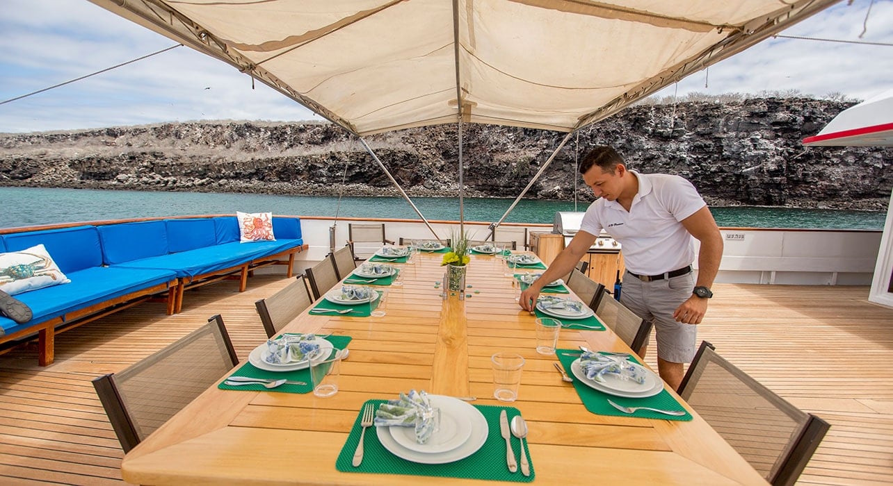 You should understand that this is not a "large-ship cruise," but once you have adjusted to yacht living, you will find this to be one of the most pleasant journeys imaginable. The day usually starts with a delicious breakfast of fresh fruit, cereal, breads, eggs, fresh juice, and coffee or tea. This is often the time when your Trip Leader gives you a briefing on the day's schedule so you can plan your clothing and equipment. On return to the boat, there may be a chance to snorkel or swim before a multi-course lunch is served. During lunch, the yacht often transits to a new area, and in the later afternoon, you'll make a second landing, taking the Zodiac ashore for more exploration and hikes. Visitors must depart the islands by 6:00 pm. After a relaxing dinner, a wrap-up talk will be given by the Trip Leader.