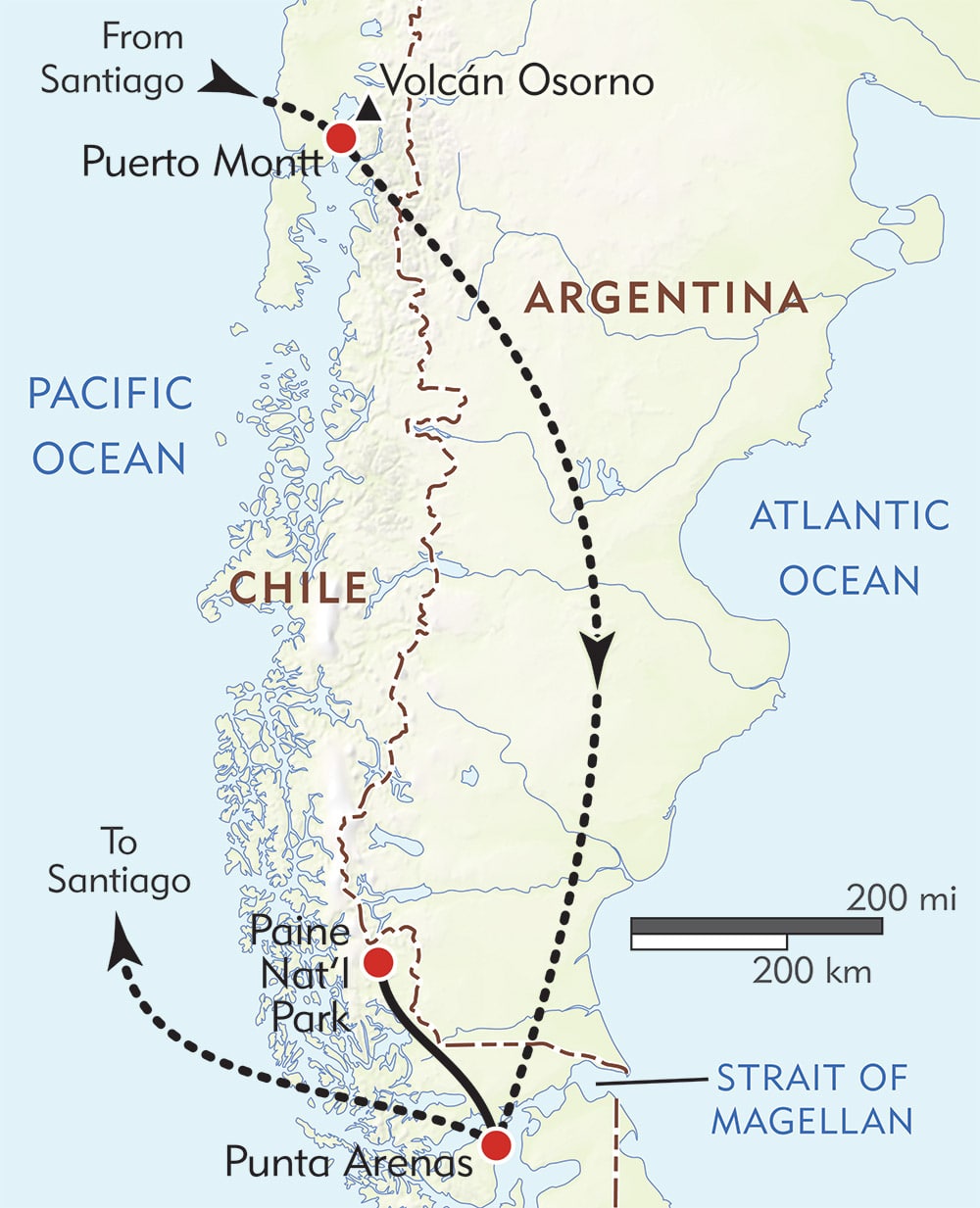 This Private Journey features Chile's volcano-dotted Lake District and the sublime world of Patagonia's Torres del Paine National Park, one of the scenic masterpieces of the planet. In the Lake District, enjoy day hikes on immense Volcán Osorno, the snow-crested icon of the Lake District, and in the mist-shrouded mountains of Alerce Andino National Park. In Paine National Park, hike fantastic trails amid Paine's famed peaks, known as The Towers for their vertical spires. Paine Grande, the highest tower, tops 10,000 feet, its dazzling rock pinnacles rising from snow and ice. Accommodations in Torres del Paine National Park are lodges in majestic settings with hiking trails right at the door step. Extend your journey to the world-famous wine country of Chile's Colchagua Valley, or to mysterious Easter Island, an open-air archaeological museum of a fascinating but vanished Polynesian culture.
