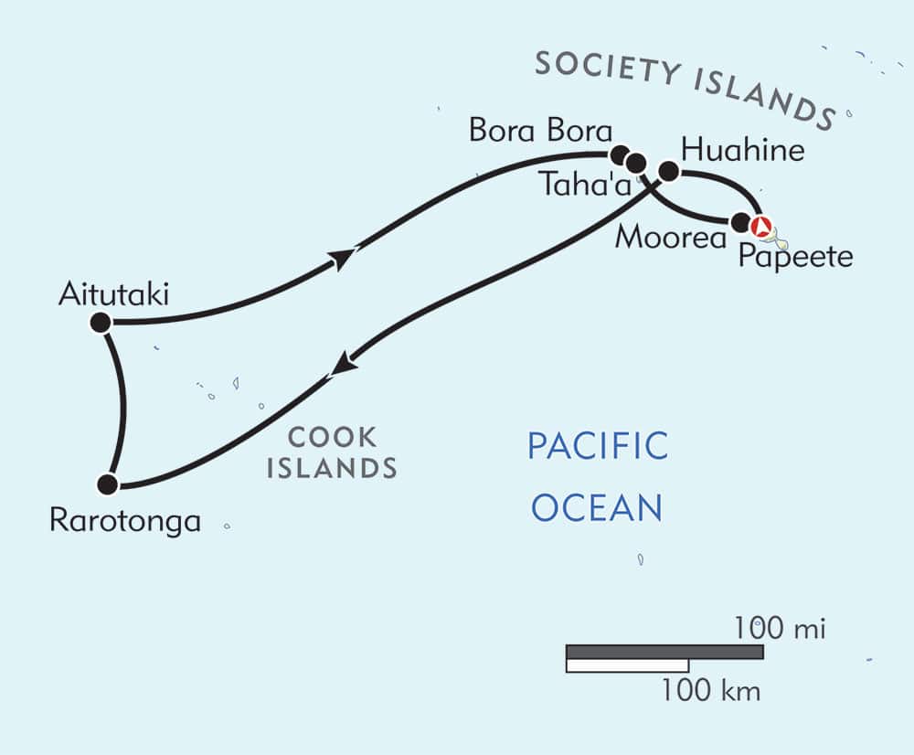 The South Pacific puts on quite a show, and the region's incredible diversity of scenery is front and center on this 11-night journey through the Cook and Society Islands. From the rugged terrain of Rarotonga and coral reef-lined lagoon of Aitutaki to the jaw-dropping beauty of bucket-list mainstays Bora Bora and Moorea, you'll be hard pressed to pick your favorite port.